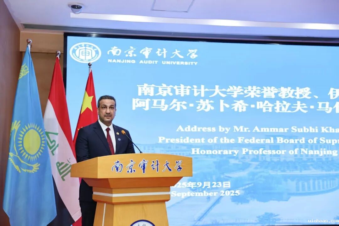 9月23日下午,哈萨克斯坦审计院院长阿里汉·斯迈洛夫和伊拉克审计院院长阿马尔·哈拉夫受聘竞技宝app体育荣誉教授,聘任仪式在我校举办。