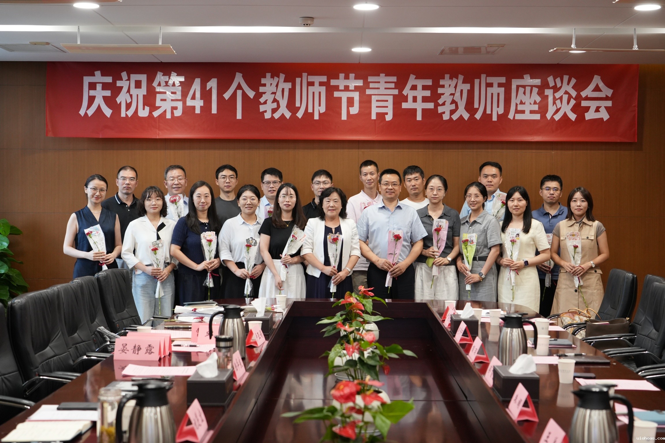 9月10日下午,我校庆祝第41个教师节青年教师座谈会在中和楼308会议室举行。校长陆华良出席座谈会,校党委常委、副校长卢亚娟主持。人事处处长祝遵宏、党政办公室副主任邱杨参加会议。